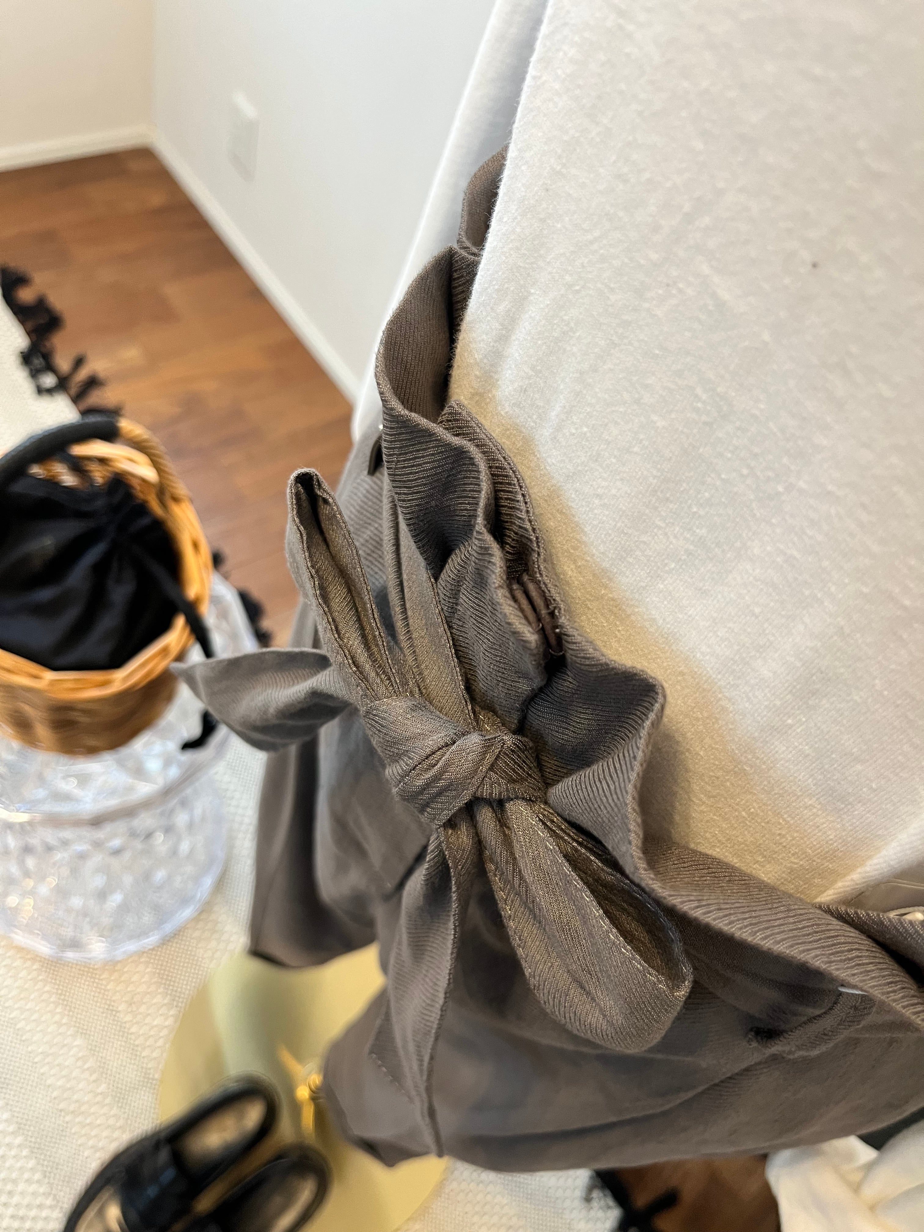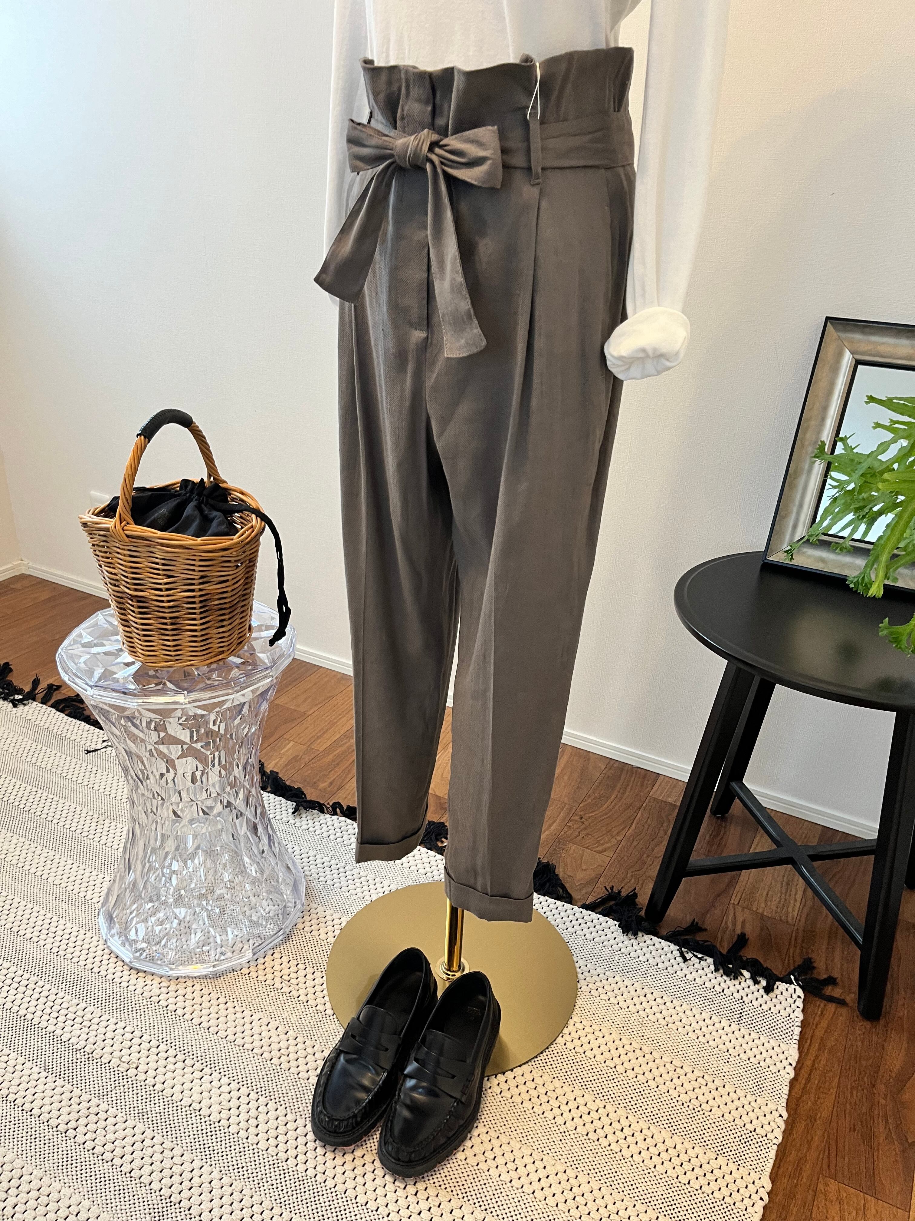 ウエストは74㎝とゆったりしており、動画のように紐のベルトで自分で調節出来ます。 ハイウエストにして上の方でリボンを作れば、かなりスタイルアップ。