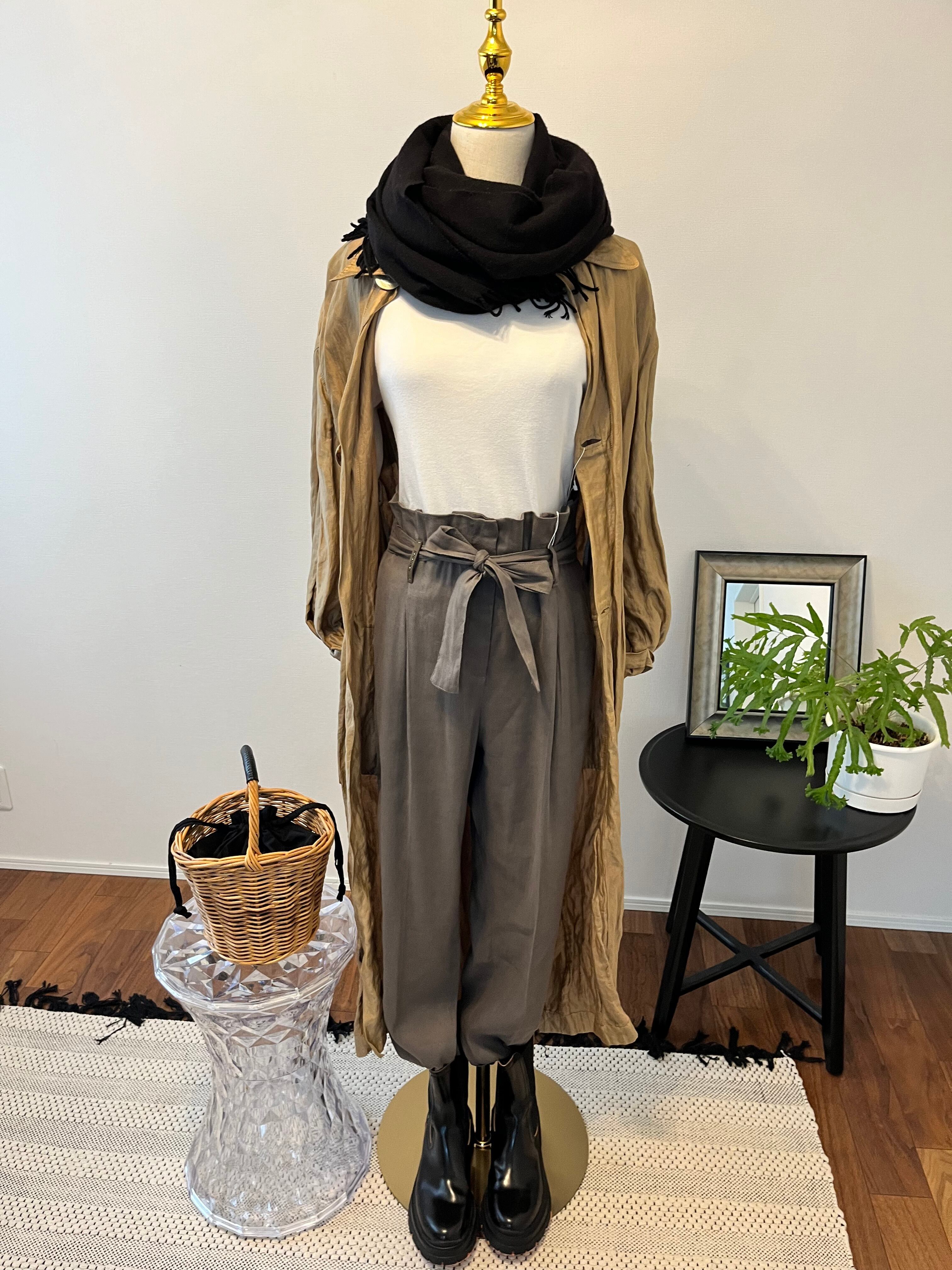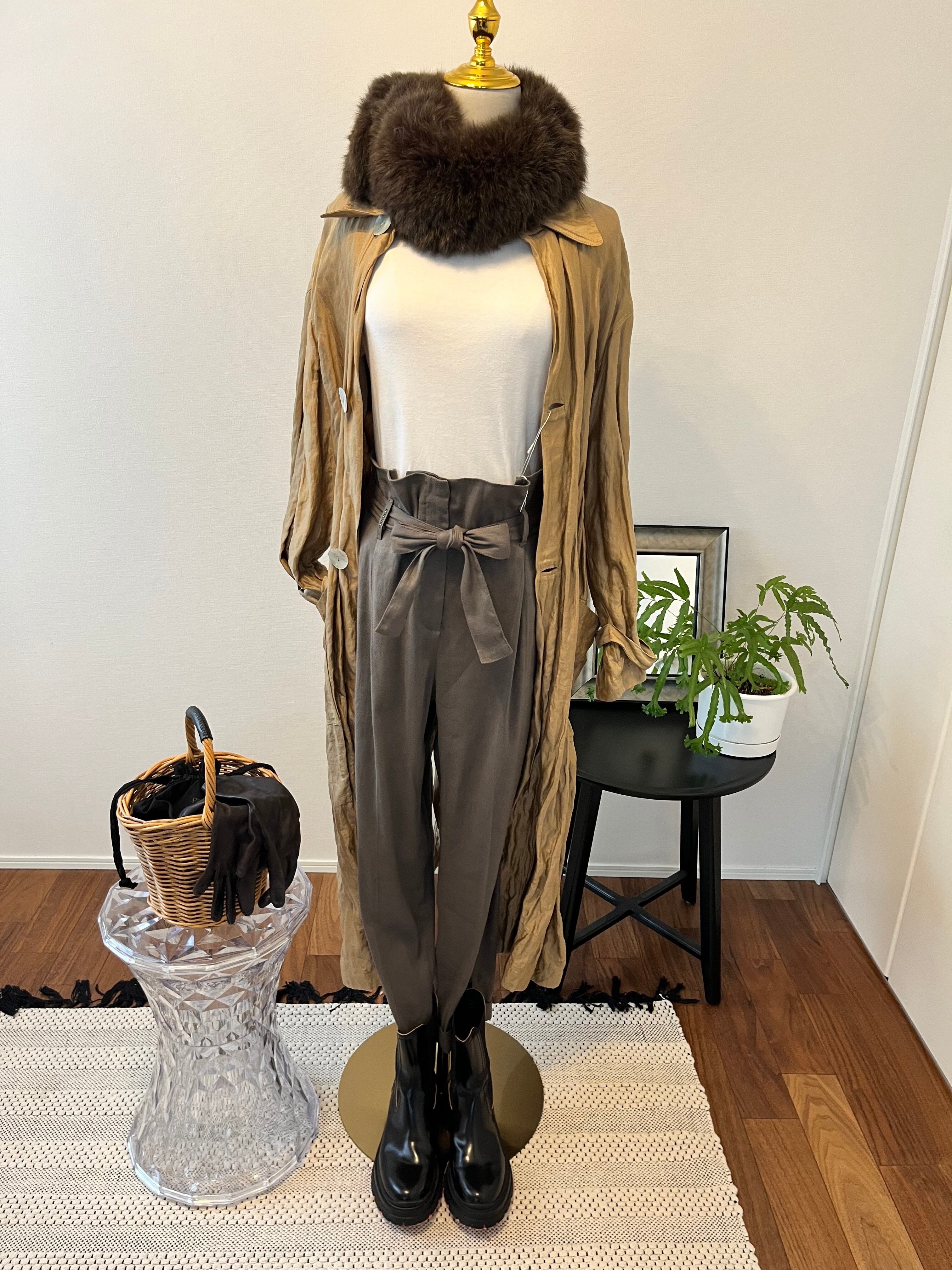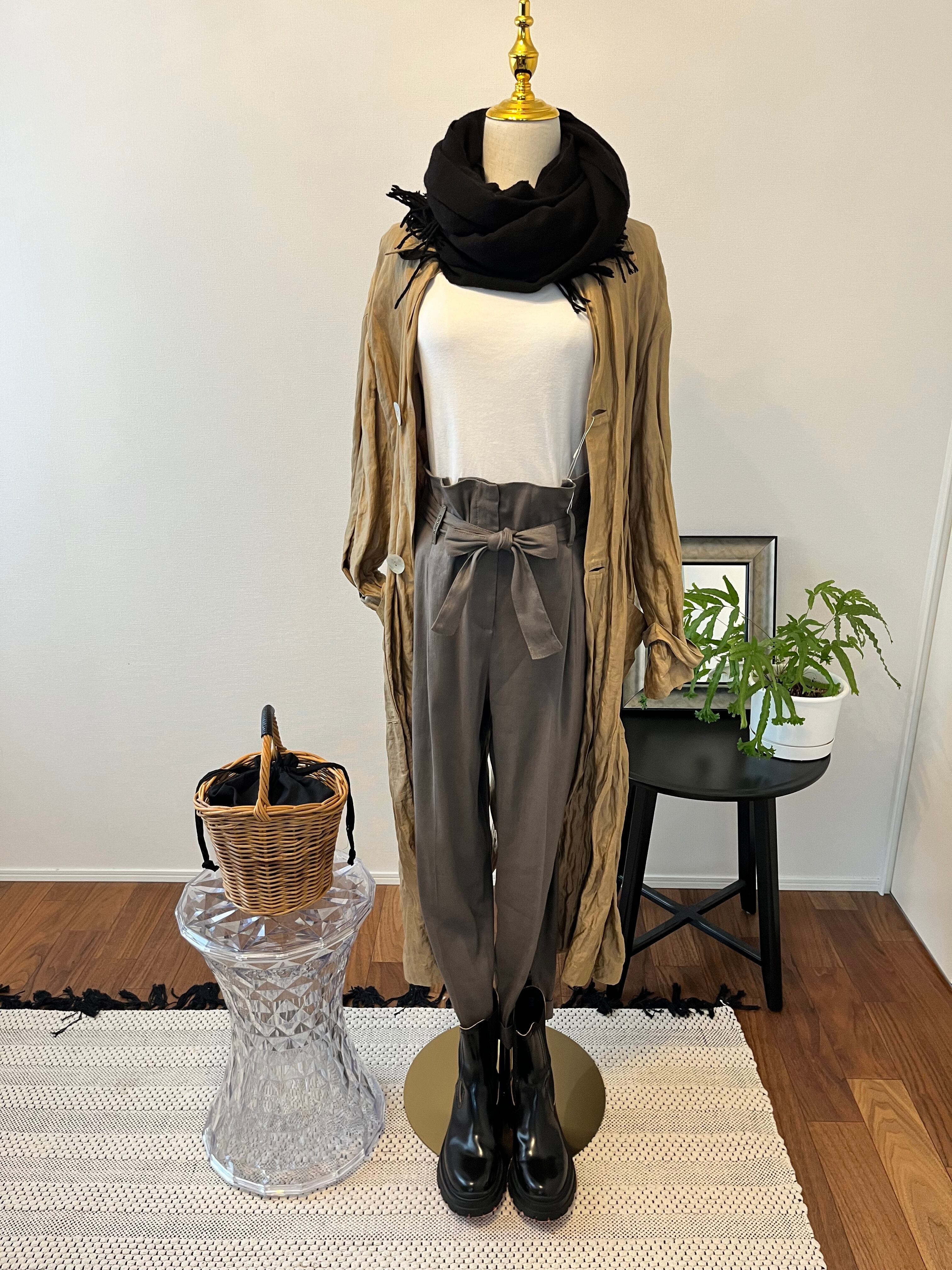 ヨーロッパのお洋服は本当に形・ラインが綺麗で生地も素晴らしく、シンプルなカットソーやシャツ、ニットでもパンツ自体が全体をまとめてくれ、充分オシャレな雰囲気を醸してくれます。 麻・レーヨンのお素材で裏地はありませんが、真冬はタイツなど履かれてブーツと合わせたら年中活躍してくれるアイテムです。