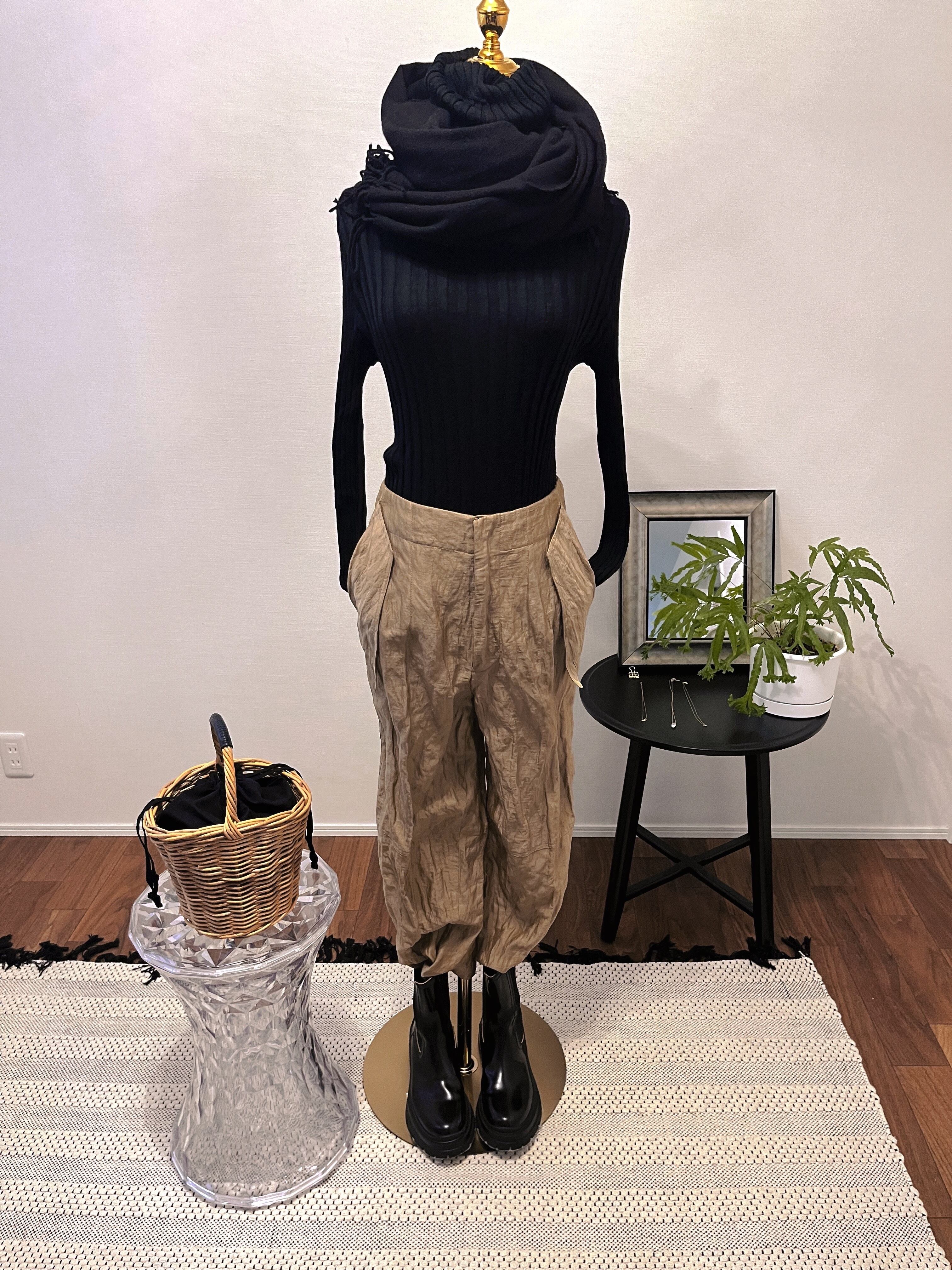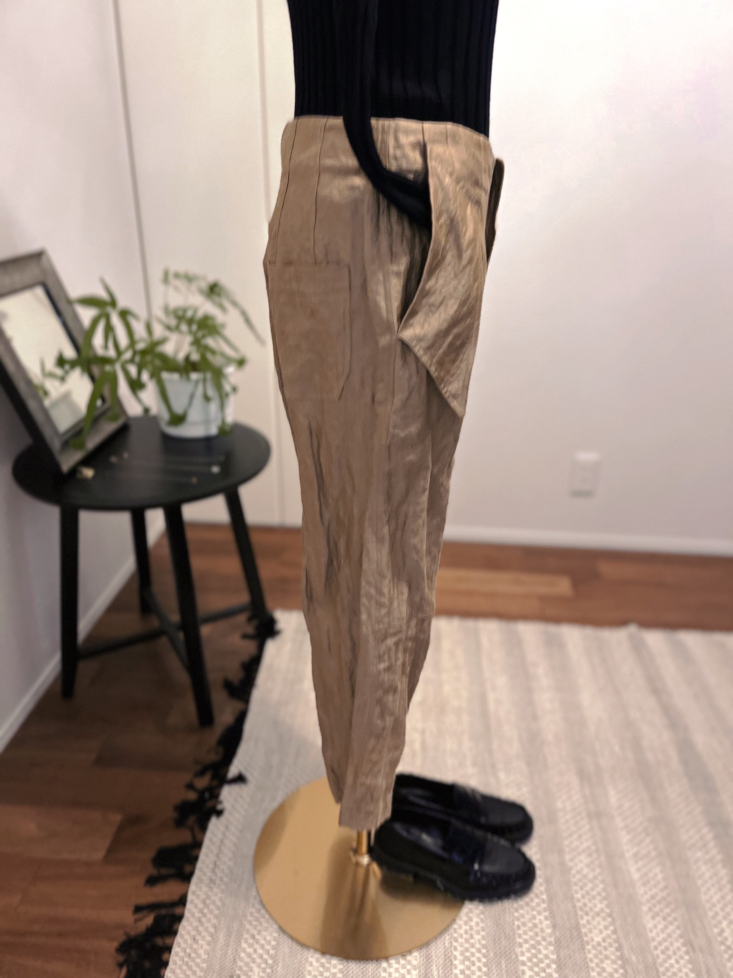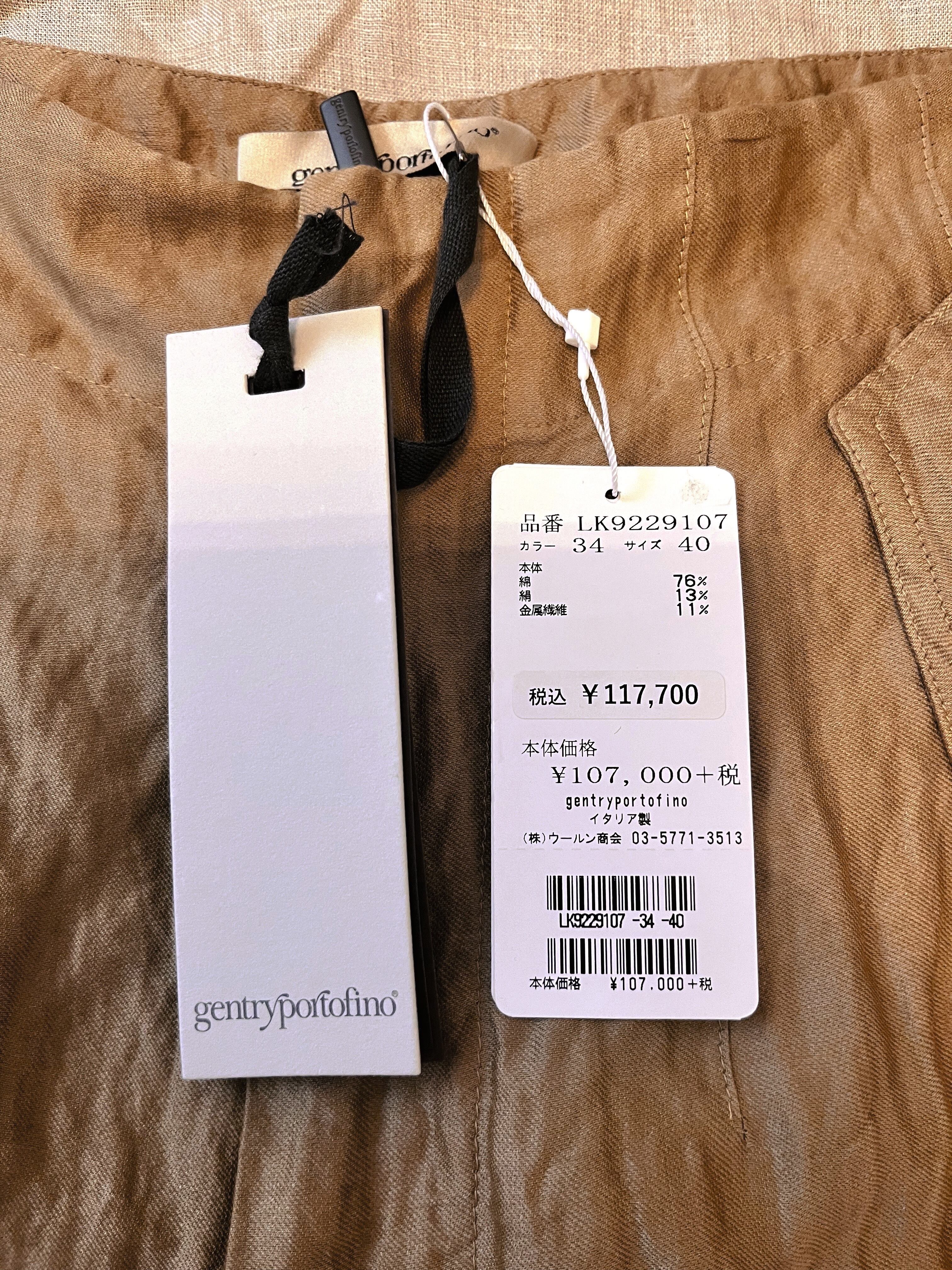 イタリアブランドGentry Portfinoの、シルク・コットンと金属繊維の使われたパンツです。